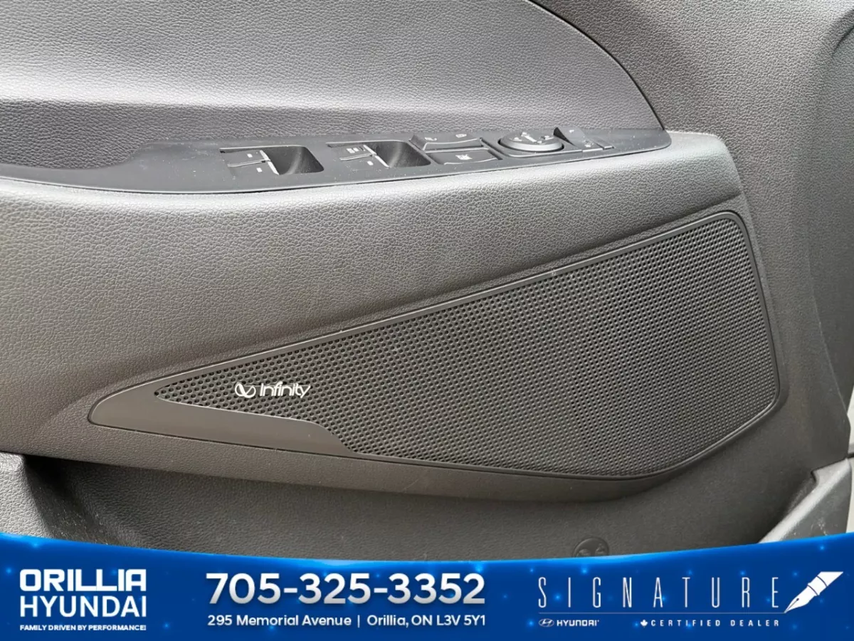 The Ultimate trim is distinguished by its panoramic sunroof, Nappa leather-heated and ventilated front seats, heated rear seats, and a heated steering wheel essentials for Canadian winters. An 8-inch touchscreen display with Apple CarPlay and Android Auto connectivity, an 8-speaker Infinity premium audio system, and a wireless charging pad round out the tech-forward interior.